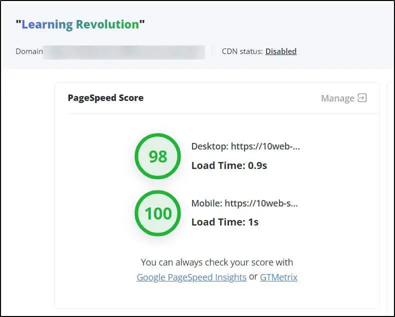 • Built-in security features: You don’t have to worry about managing SSL certificates, malware protection, or updates—10Web handles it all for you.