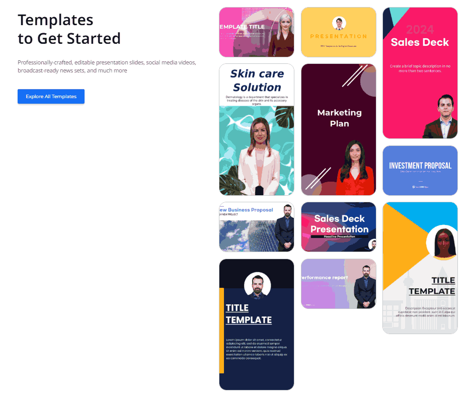 AI Studios offers a robust collection of over 500 video templates to cater to various industries, including education, sales, and media. These templates are designed to simplify the video production process, enabling users to create high-quality videos efficiently and effectively.