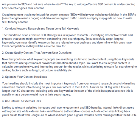 Not only is the part written by Frase consistent with the tone of my writing, but it’s on-topic and provides a concise, accurate answer to the main question. And if I didn’t know better, I’d think it had been written by a real human.