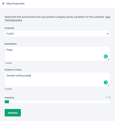 Frase’s Content Editor is fantastic. It has one of the best UIs we’ve seen and works really well.