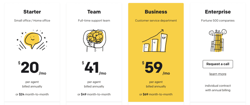 The Starter plan, priced at $20 per agent per month (annual subscription), offers robust features, albeit with limitations such as a 60-day chat history retention. Subscription options include a 12-month plan at $24 per month ($288 total).
