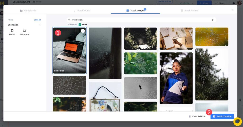 That said, it’s more than just a voice generator. It can help you create videos, too. It’s not a traditional AI video generator where you generate a video from a text prompt. Instead, it provides millions of stock music, image, and video assets that you can use to create videos for the web, social media, marketing or training videos, and more.